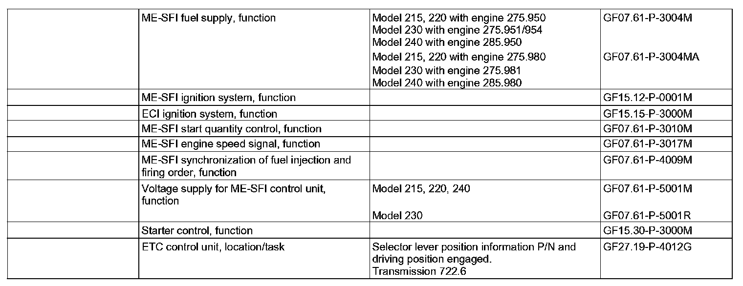 Starting is only possible in the selector lever position P/N and when the service brake is operated. The P/N selector lever position information is sent via the CAN from the transmission control unit. The information "service brake operated " arrives via CAN from the ESP control unit (N47-5).
