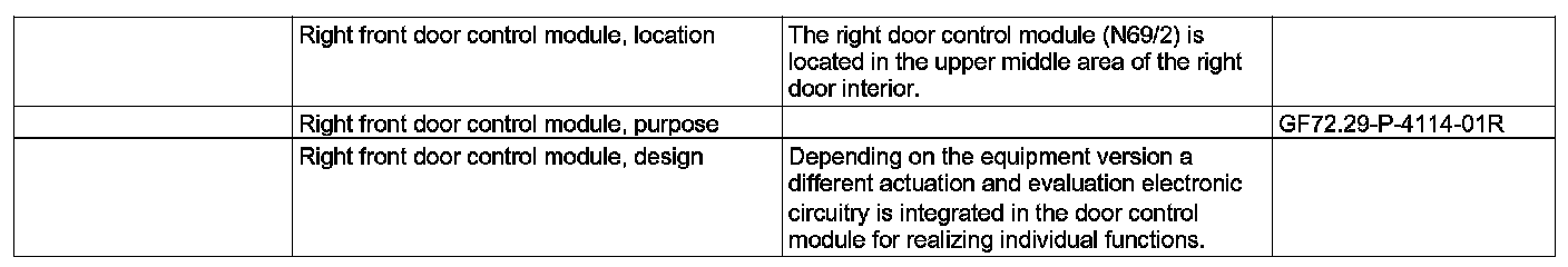 GF72.29-P-4114R Right Front Door Control Module, Location/Purpose/Design