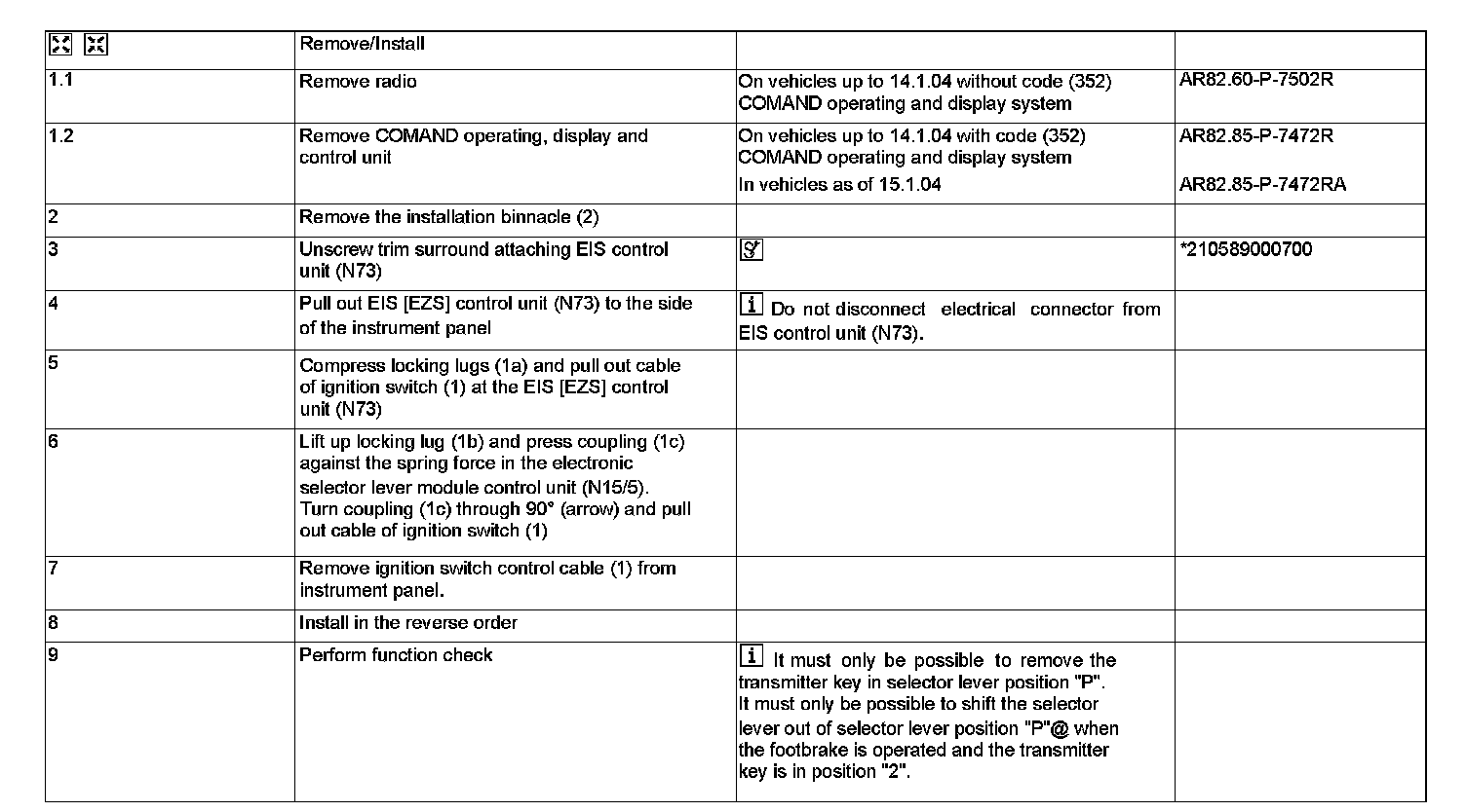 AR27.60-P-0122R Remove/install ignition lock control cable