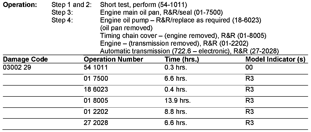The following allowable labor operations should be used when submitting a warranty claim for this repair.