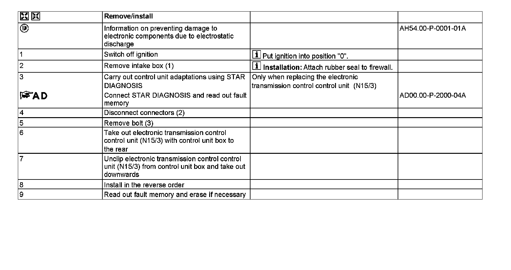 AR27.19-P-1719RBS Remove/Install Electronic Transmission Control Control Unit (EGS)