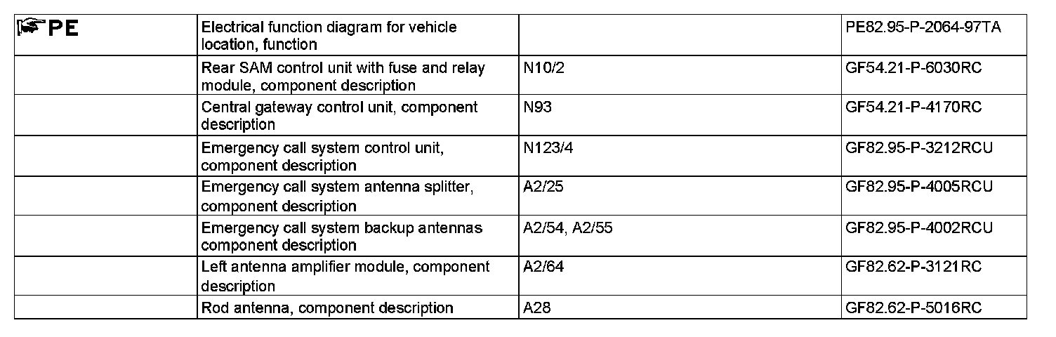 - Emergency call system left backup antenna (A2/54)