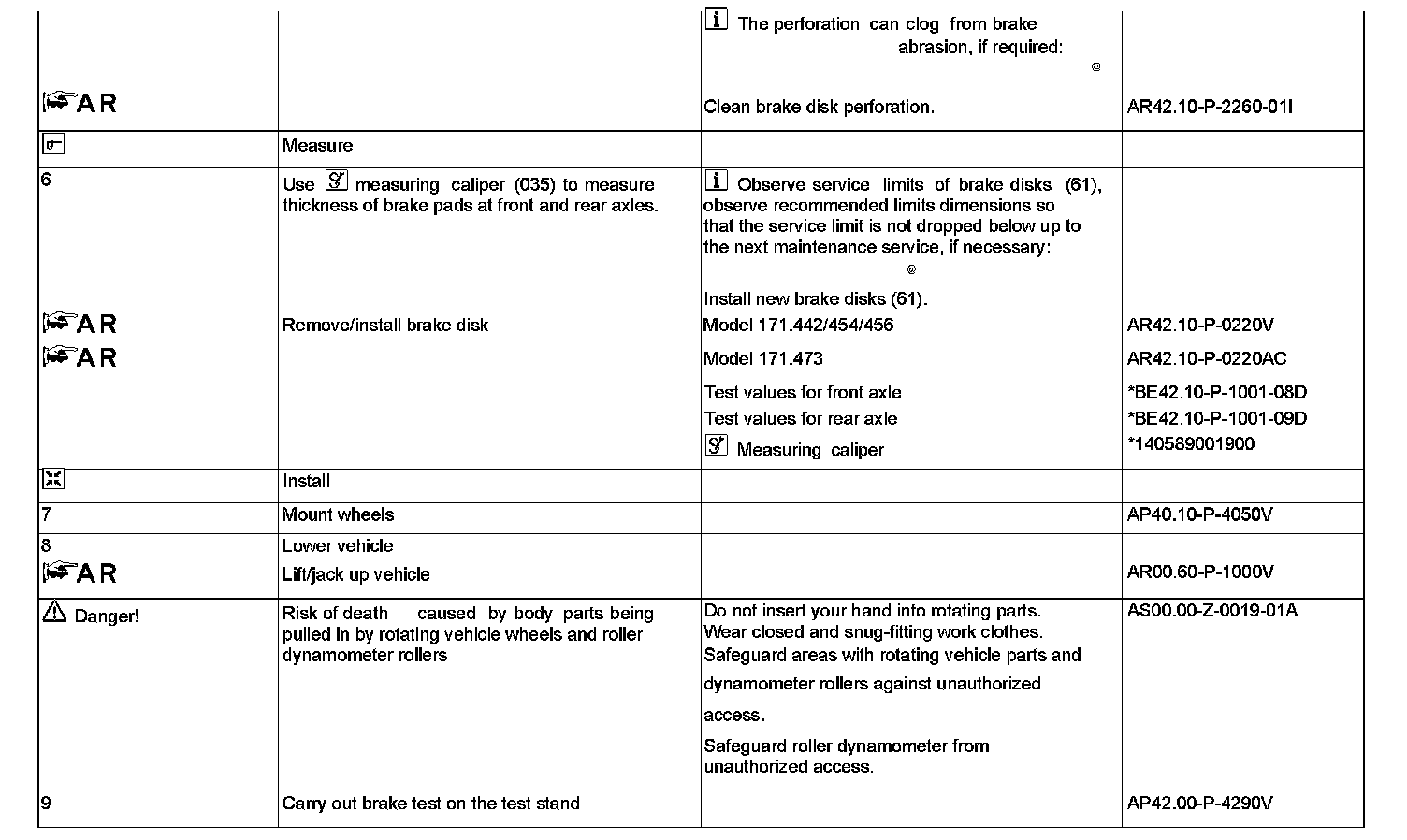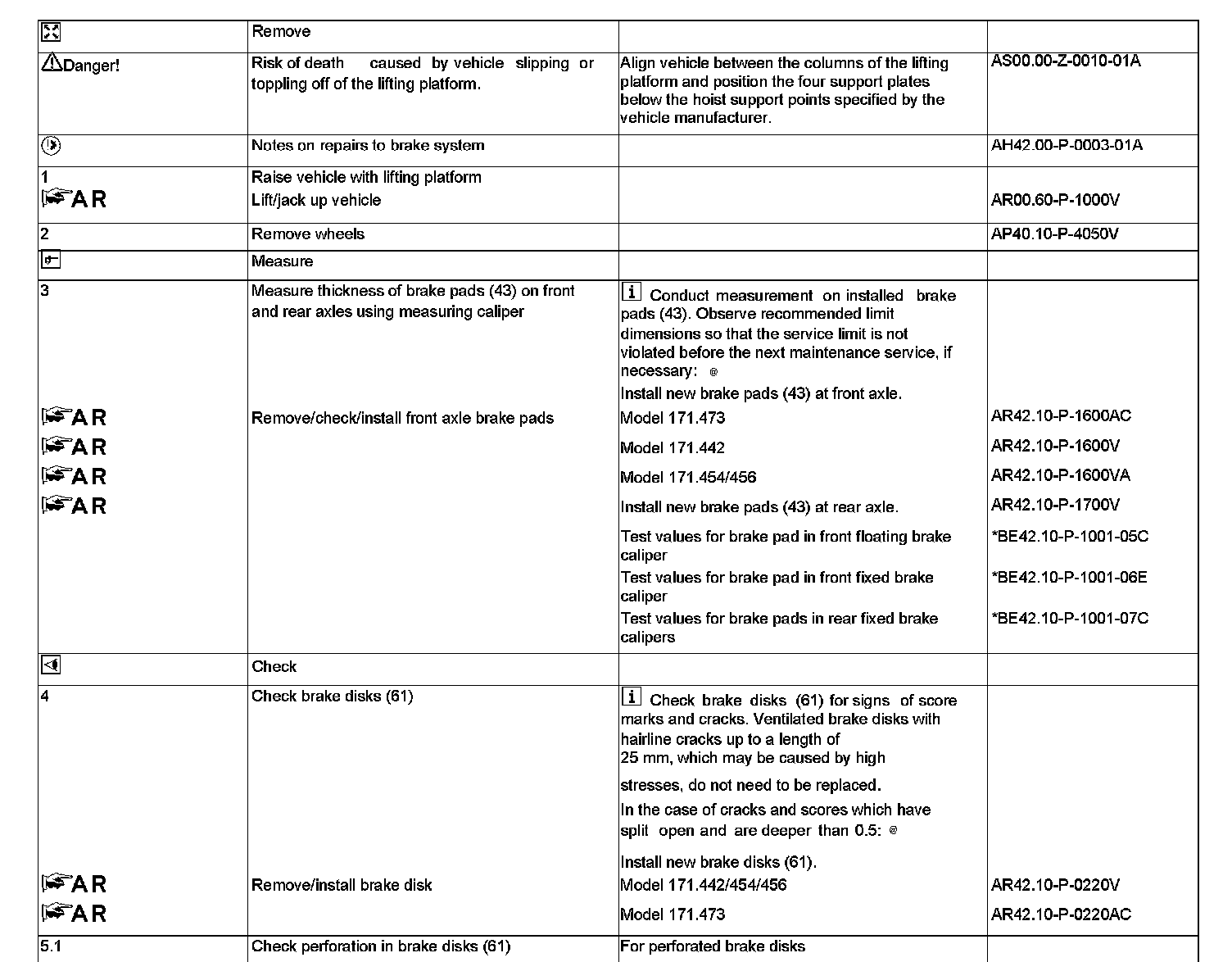 AP42.10-P-4251V Check lining thickness of brake pads and condition of brake disksComponent Identification: