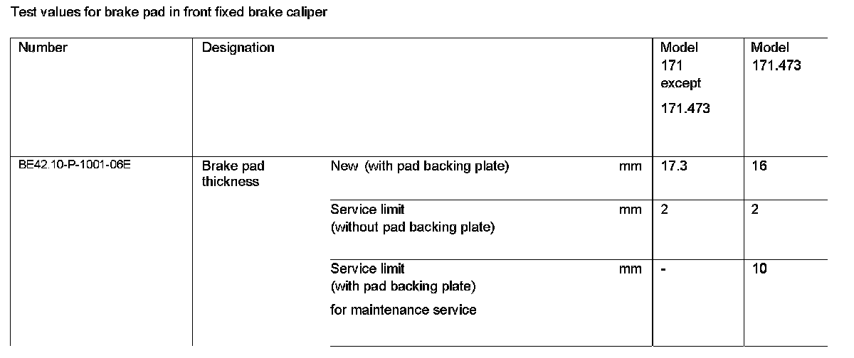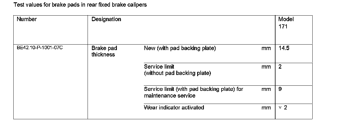Test Values For Brake Pads In Rear Fixed Brake Calipers: