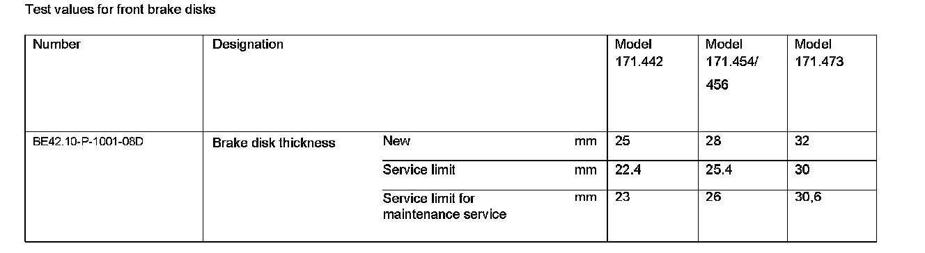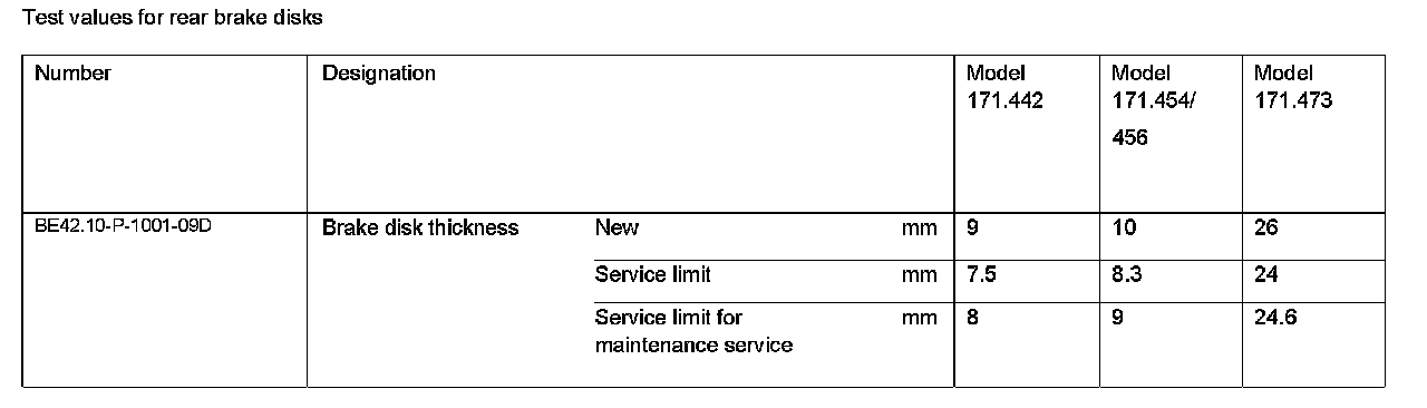 Test Values For Rear Brake Disks: