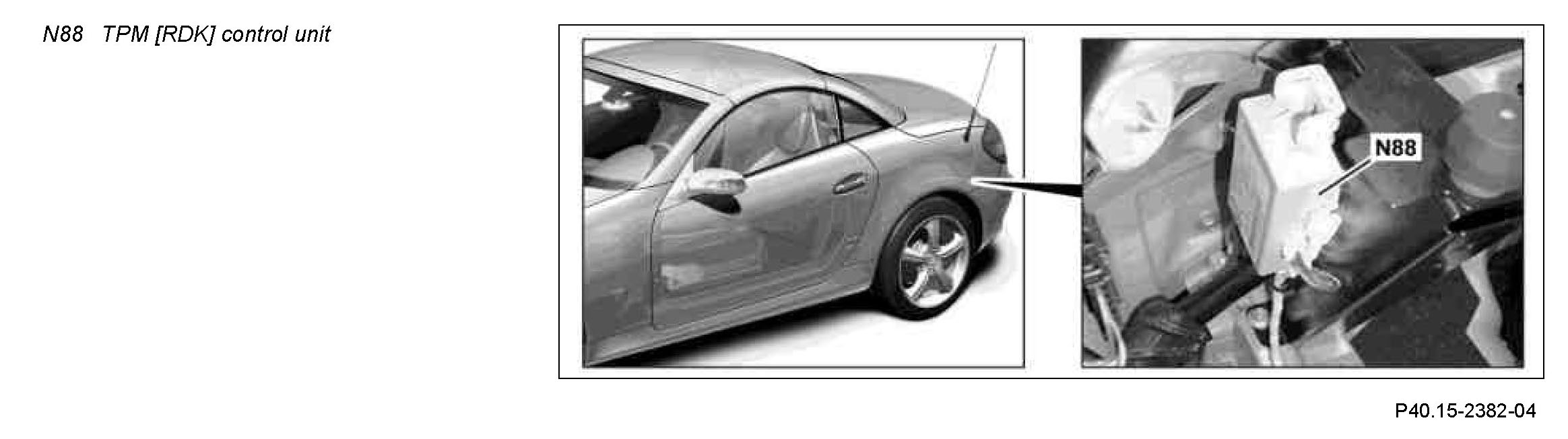 The TPM [RDK] control unit is connected to the Controller Area Network bus Class B (interior) (CAN B) for the exchange of data.