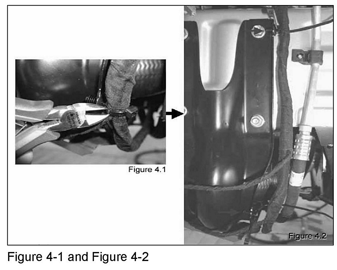 5. Remove both tie straps on the radiator console (Figure 4-1) and install new tie straps (Figure 4-2).