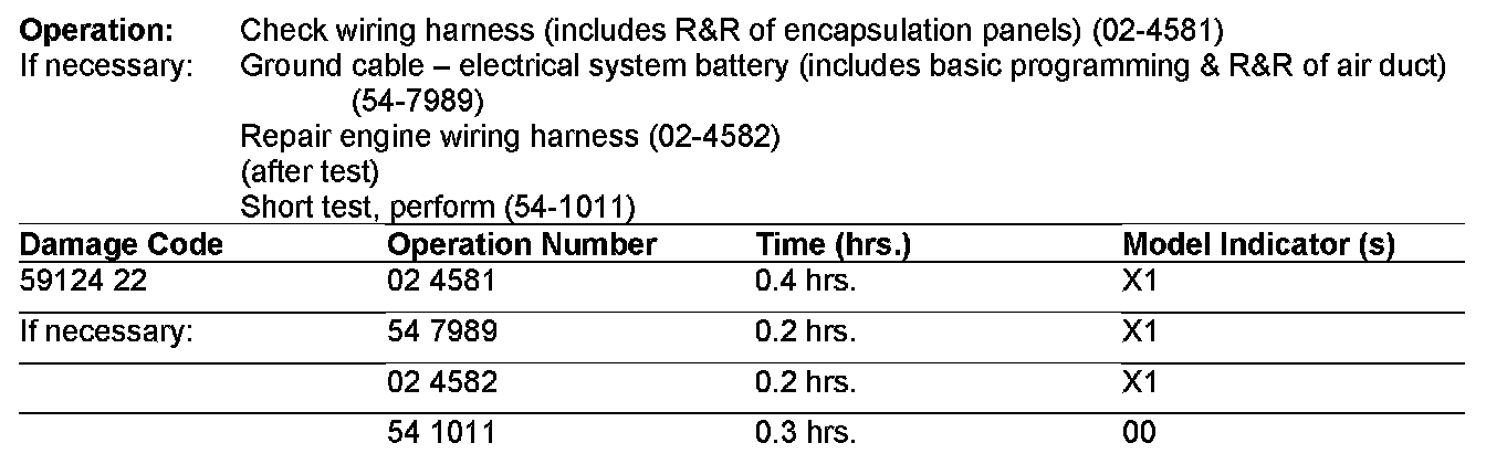 The following allowable labor operations should be used when submitting a warranty claim for this repair.