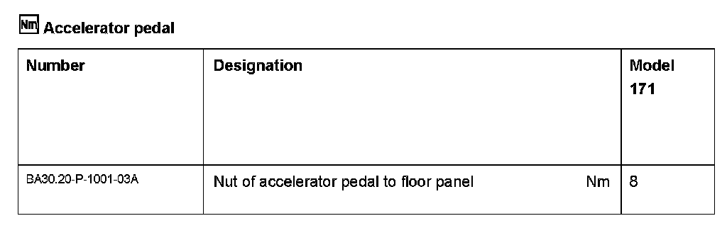 Accelerator Pedal: Specifications