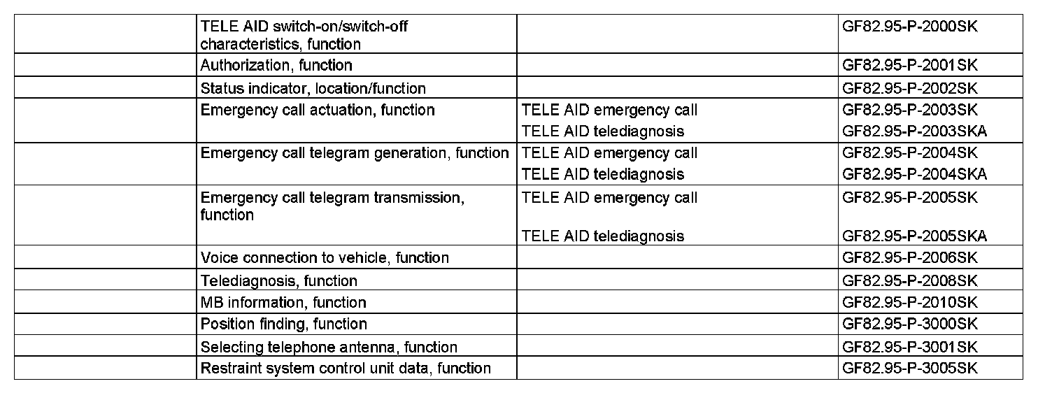^ Telematic Alarm Identification on Demand (emergency call system) (TELE AID) (incl. police emergency call number "911"), manual or automatic