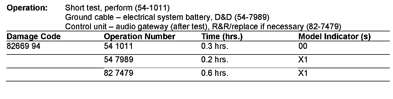The following allowable labor operations should be used when submitting a warranty claim for this repair.