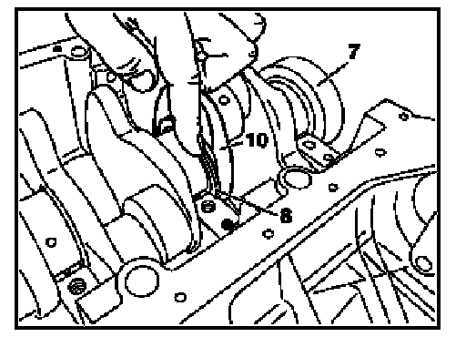 When doing this, ensure that the anti-twist locks (5) of the bottom crankshaft bearing shell halves (7) are located in the recesses of the crankshaft bearing caps (6).