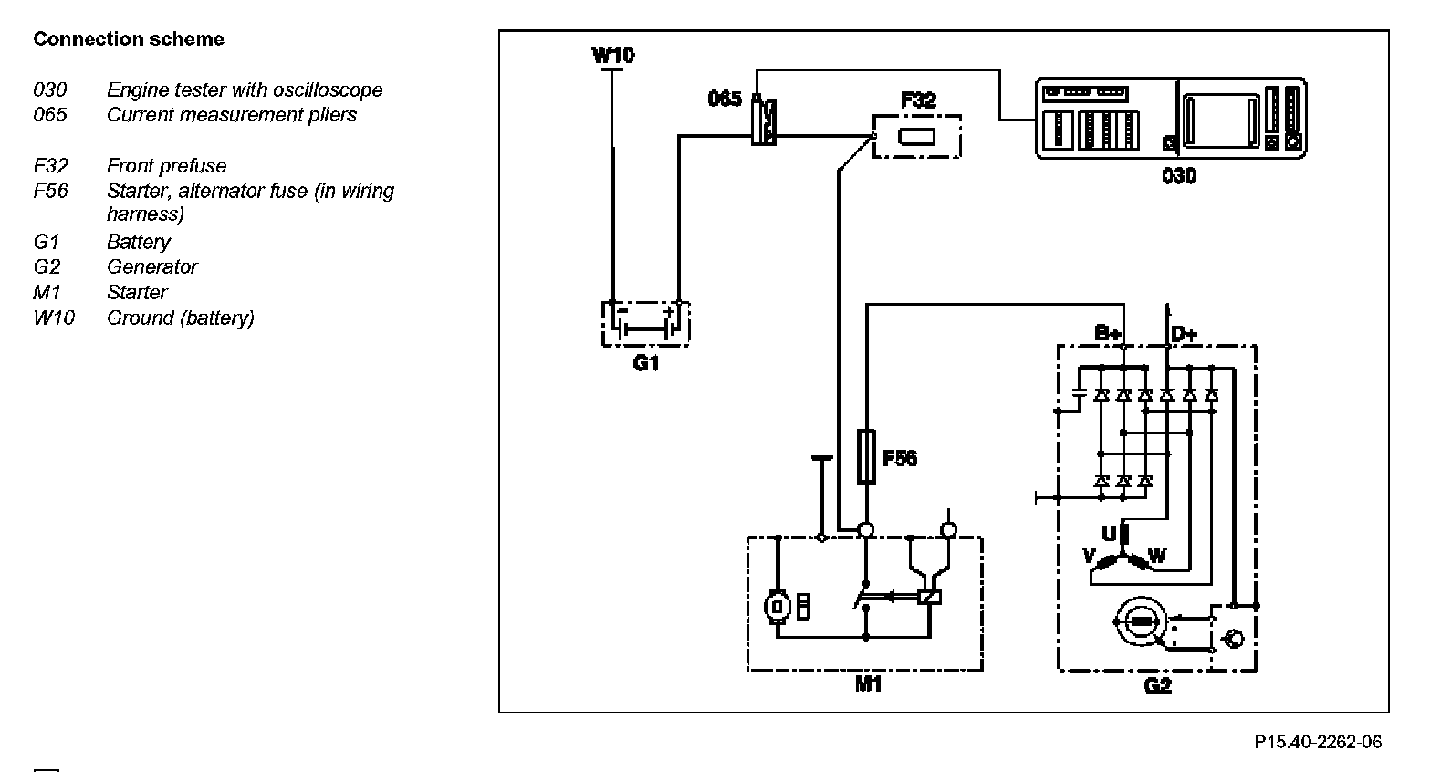 Example: Zero line if the starter, alternator fuse (in wiring harness) (F56) is defective.