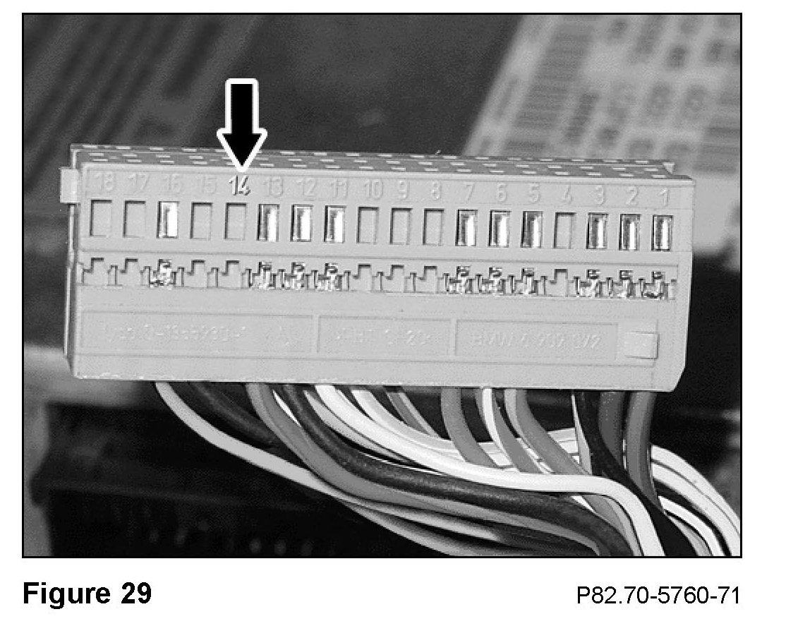 3. If pin # 14 is vacant (Arrow, Figure 29), proceed to step 6.