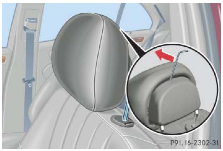 Note: For your convenience, we recommend that you have this work carried out by an authorized Mercedes-Benz Center. You will find the reset tool for manually operating the head restraints in the Mercedes-Benz vehicle literature pouch.