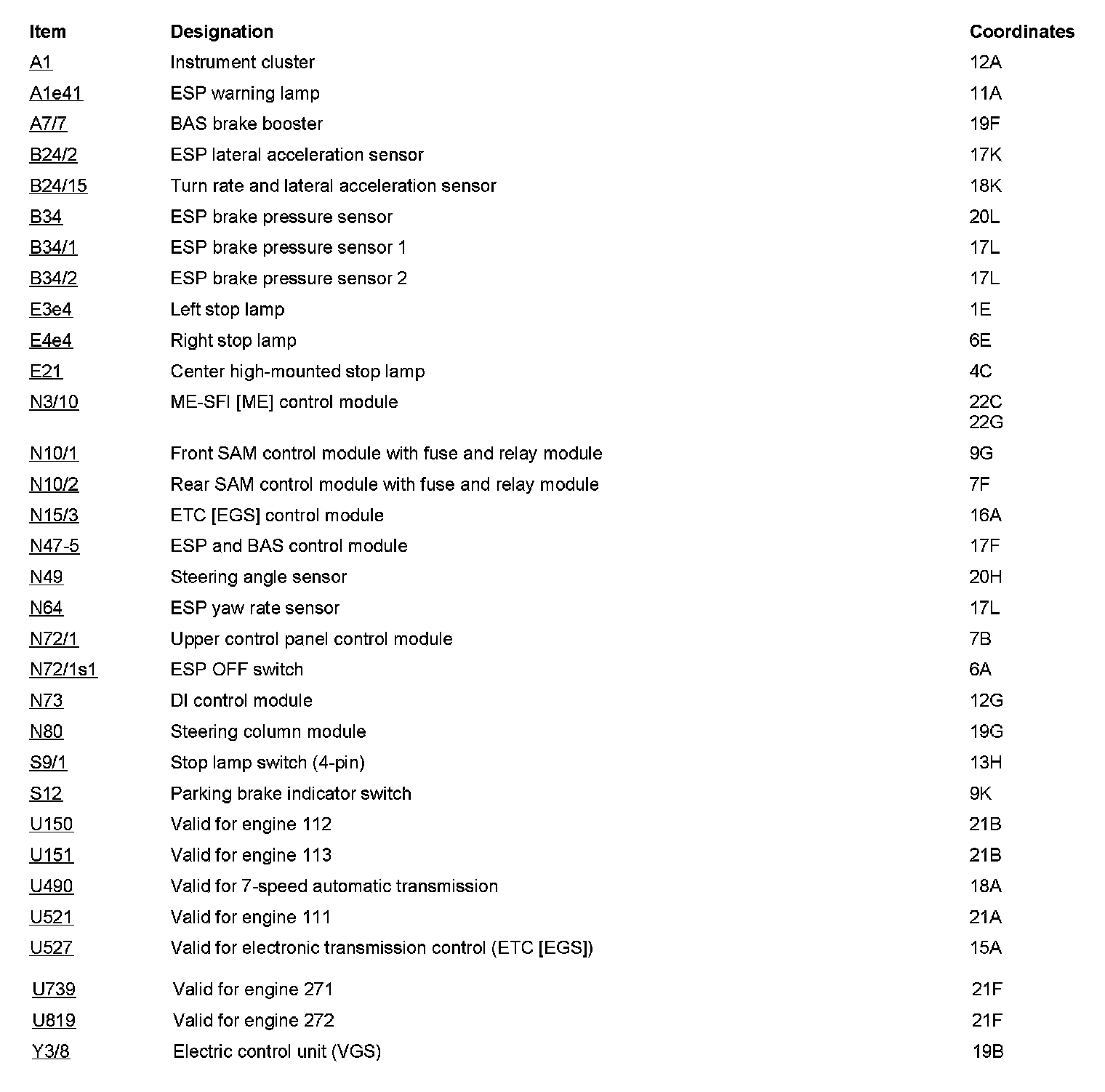 Component Description/Coordinates, A1 To Y3/8: