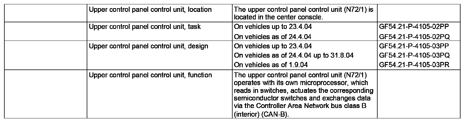 GF54.21-P-4105PP Upper Control Panel Control Unit, Location / Task / Design / Function