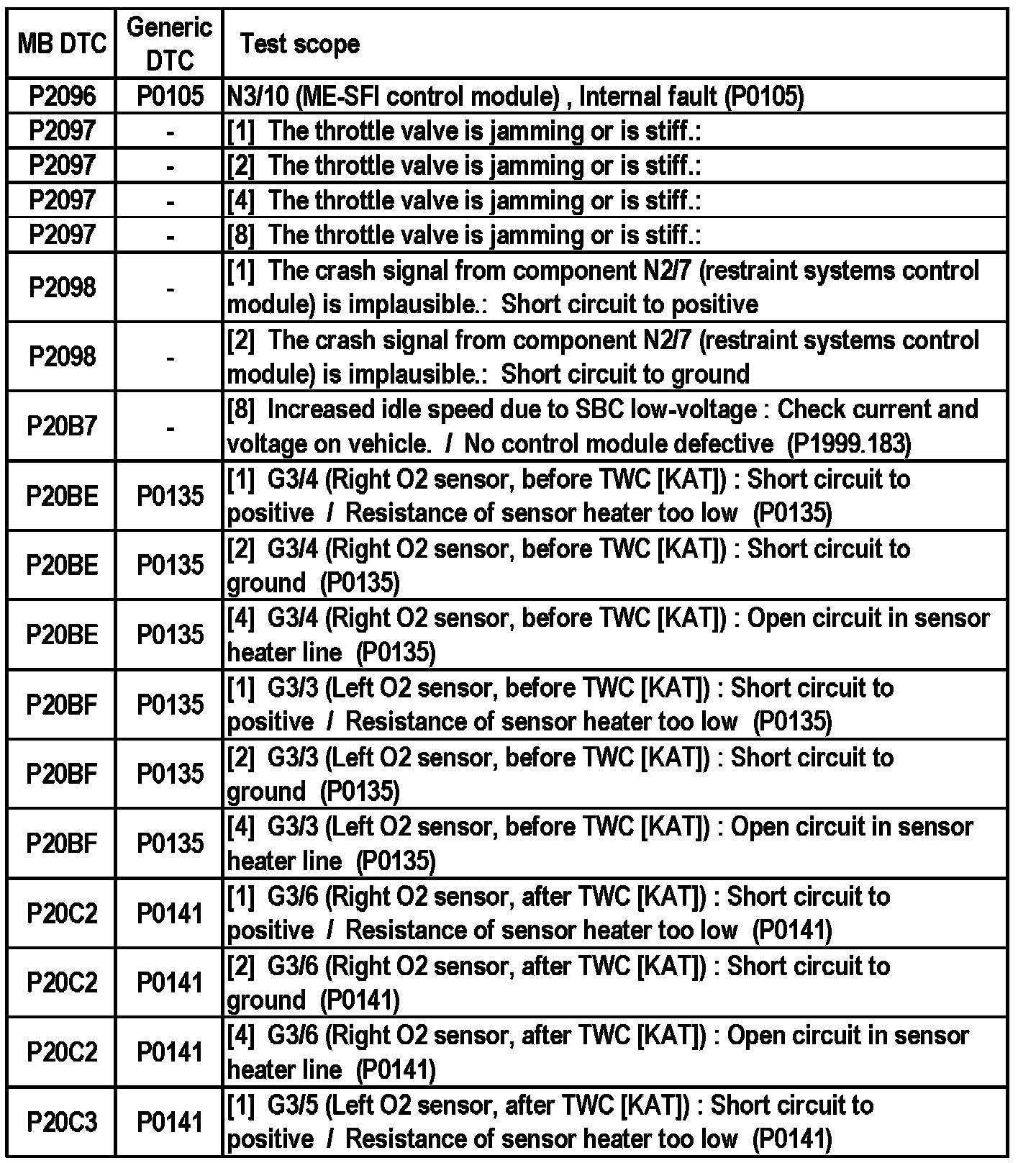 MB DTC P2096 - P20C3: