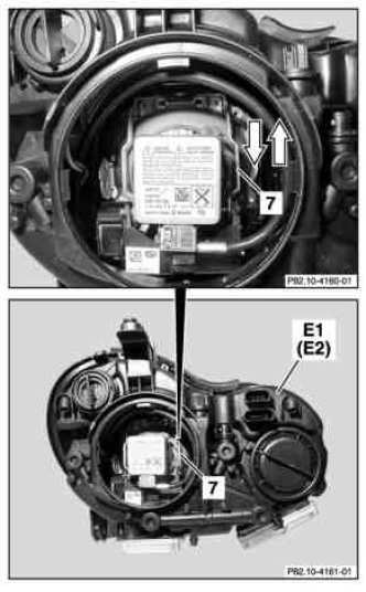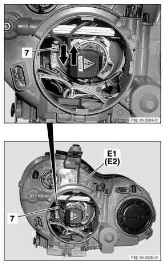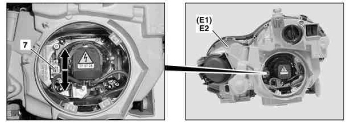 Observe the safety regulations pertaining to handling high-voltage parts on xenon and bi-xenon headlamps.