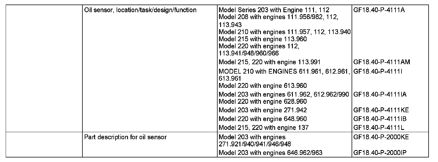 - Model 203 with ENGINE 111, 112, 113, 271 up to 31.5.05, 611, 612, 646