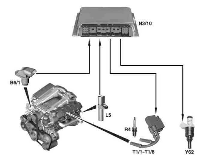 If, at this moment, the signal from the camshaft Hall sensor is at 0 volt ("low") the ME control unit processes this in order to detect ignition TDC of cylinder 1.