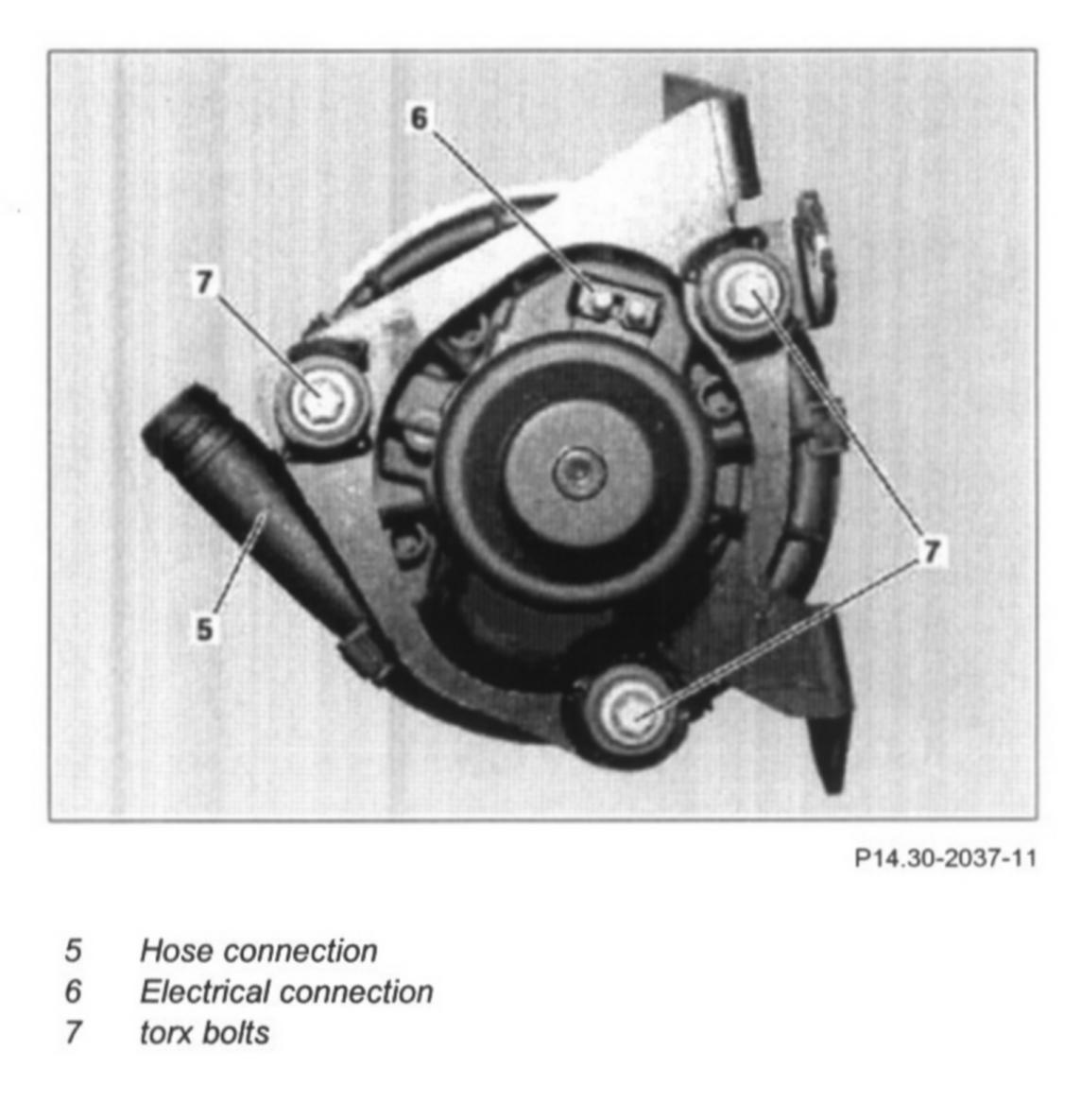 - Unscrew torx bolts (7) at air pump (1) for this purpose.