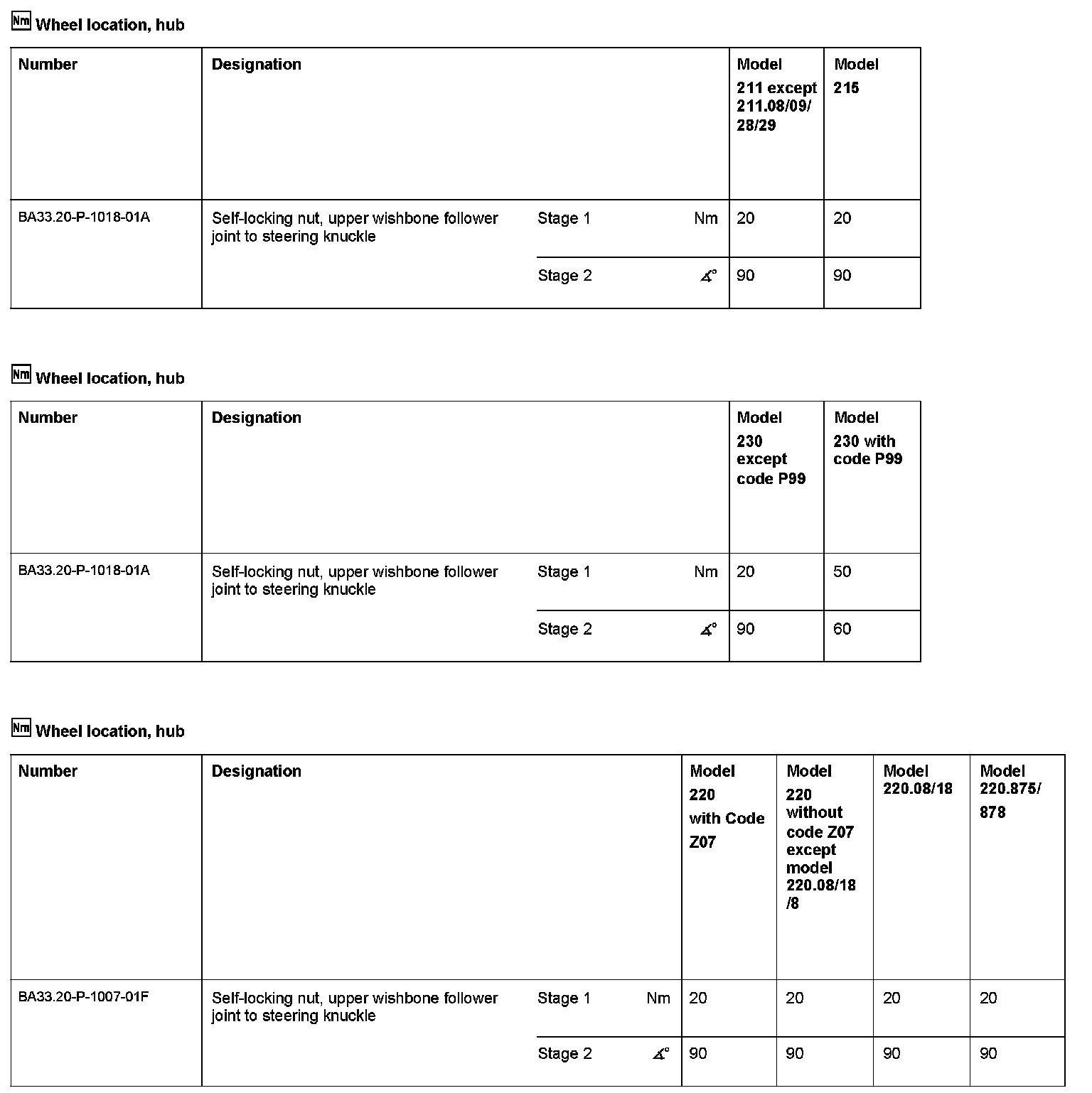 Observe variant of upper ball joint (8) (only model 211, 230).