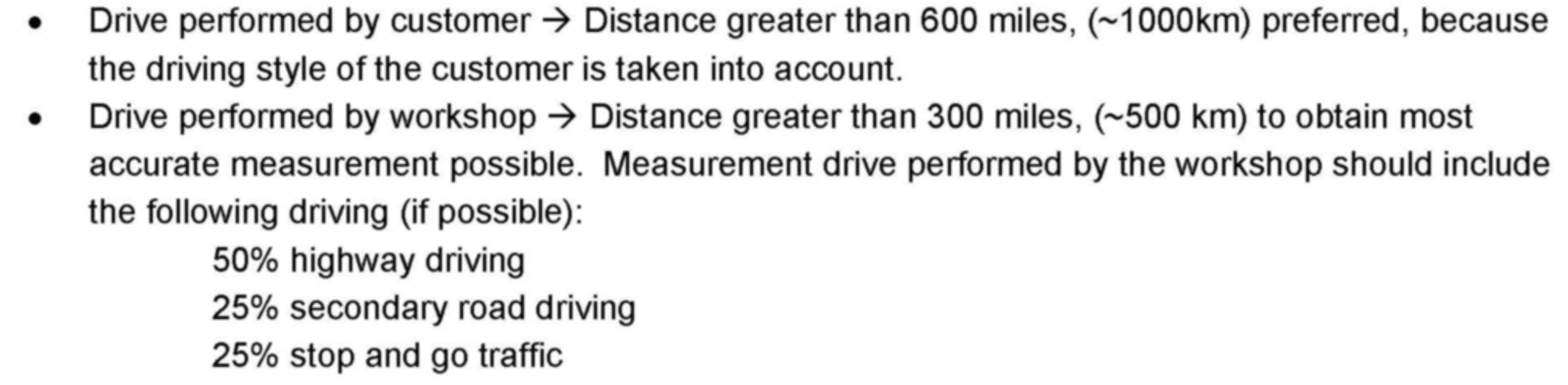 Minimum driving distance for oil consumption measurement drive shown above.