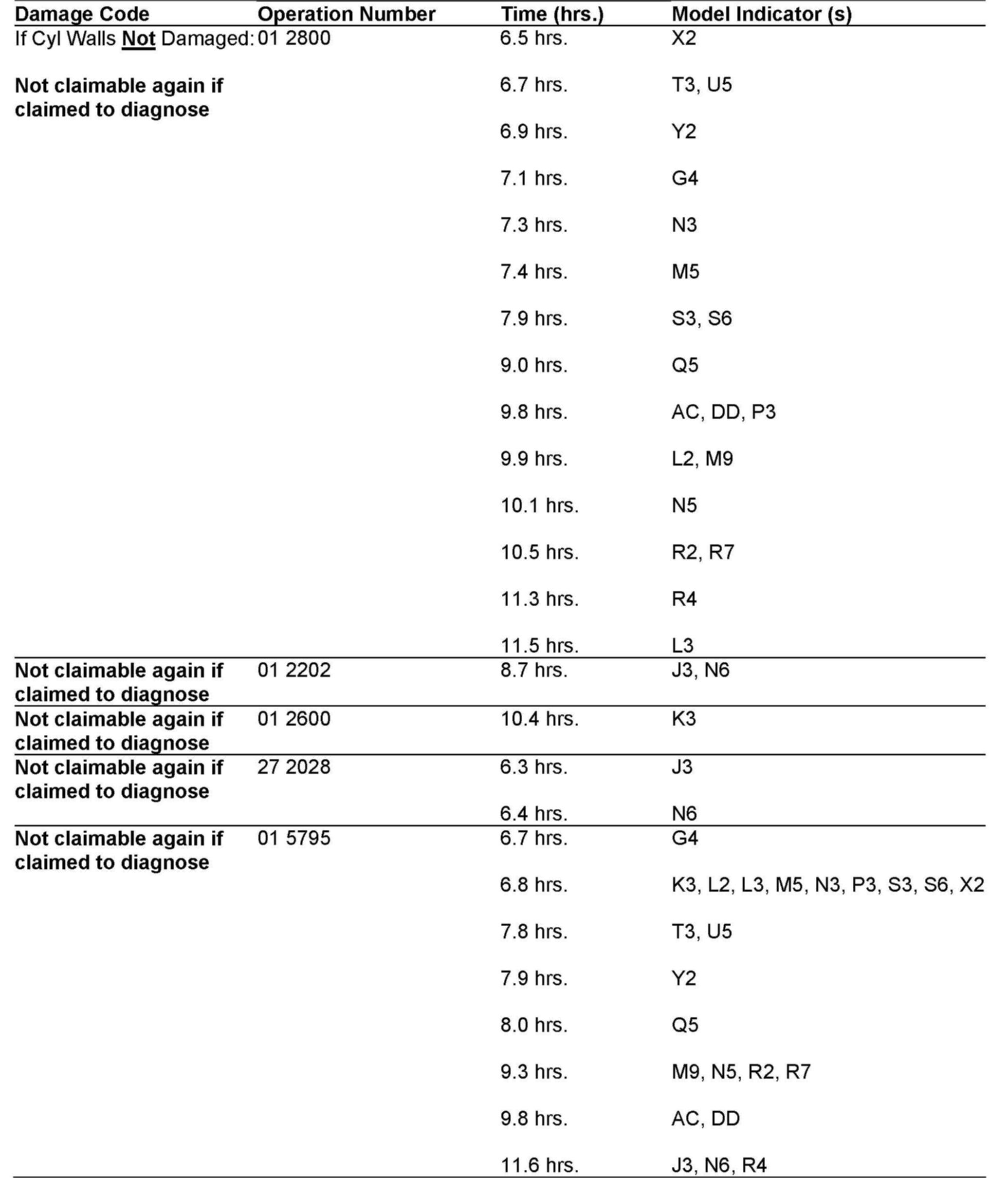 5. If the cylinder walls are damaged on engines 112.96x, 113.98x, and 275.98x the complete engine. must be replaced. Submit Engine Pre-authorization Form to WSG.
