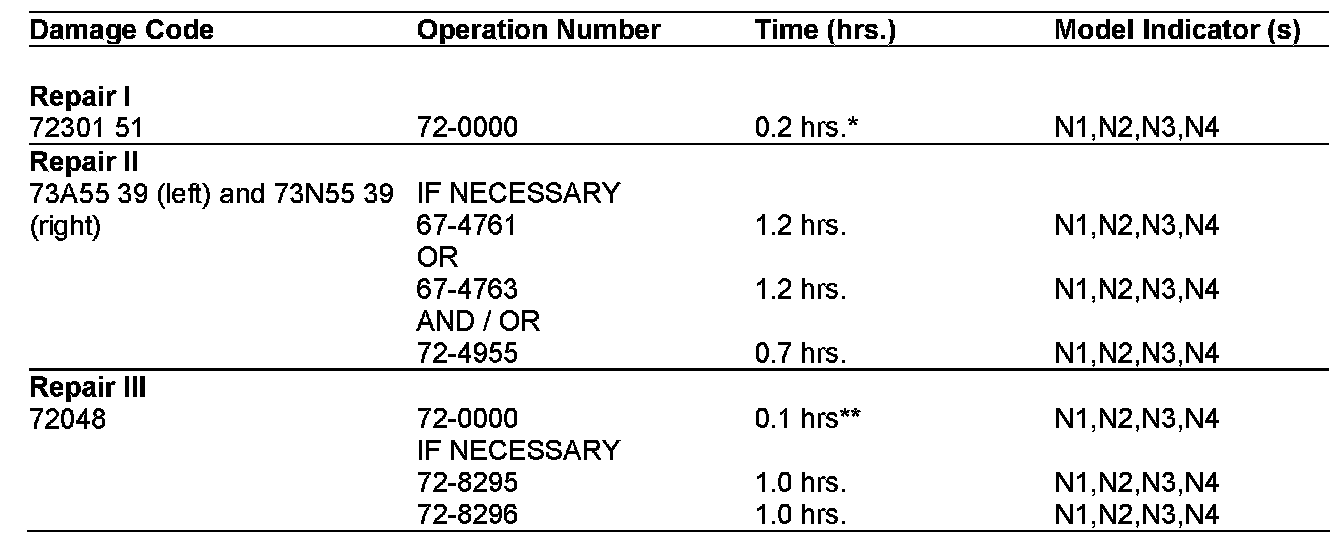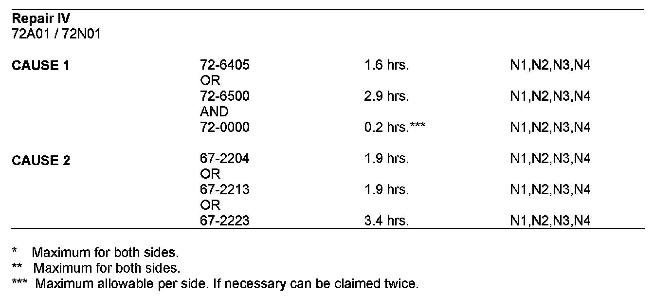 - The following allowable labor operations should be used when submitting a warranty claim for this repair.