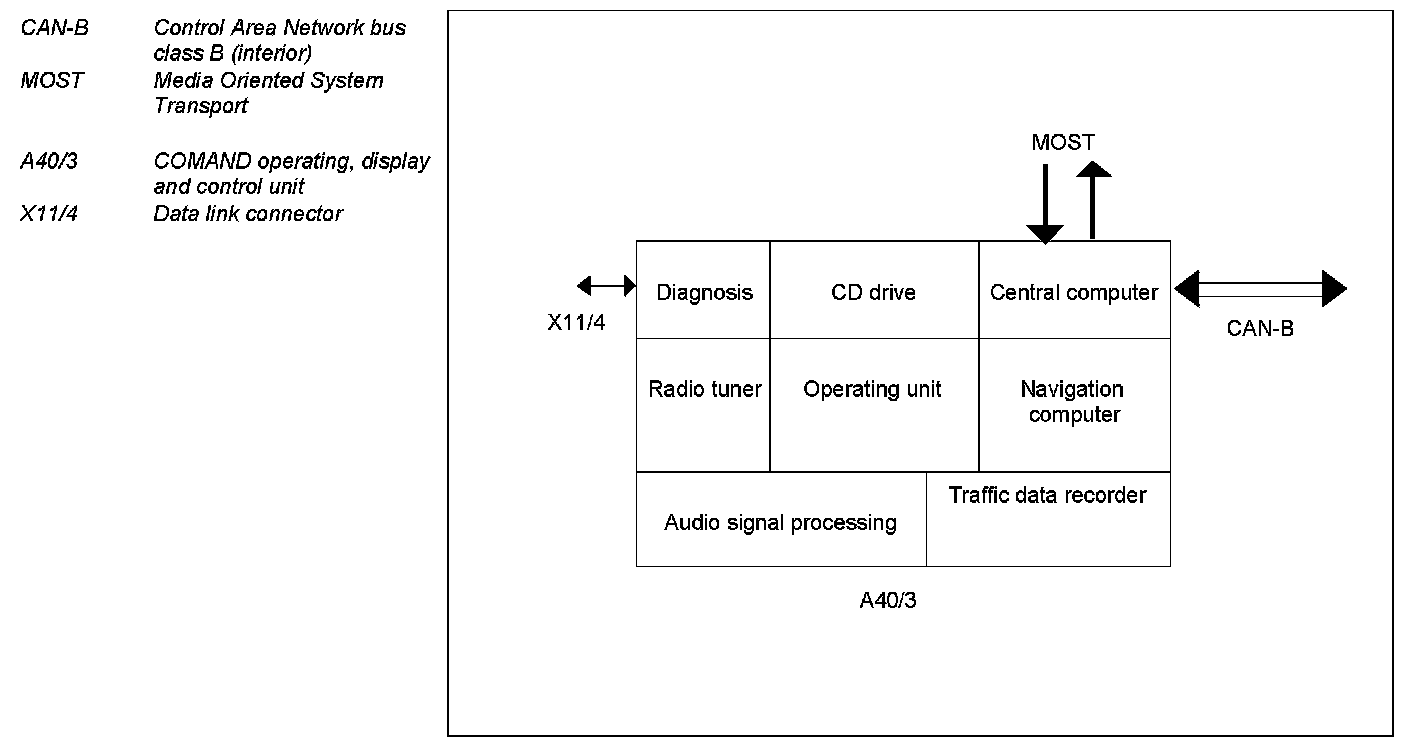 The COMAND operating, display and control unit (A40/3) has the following digital interfaces: