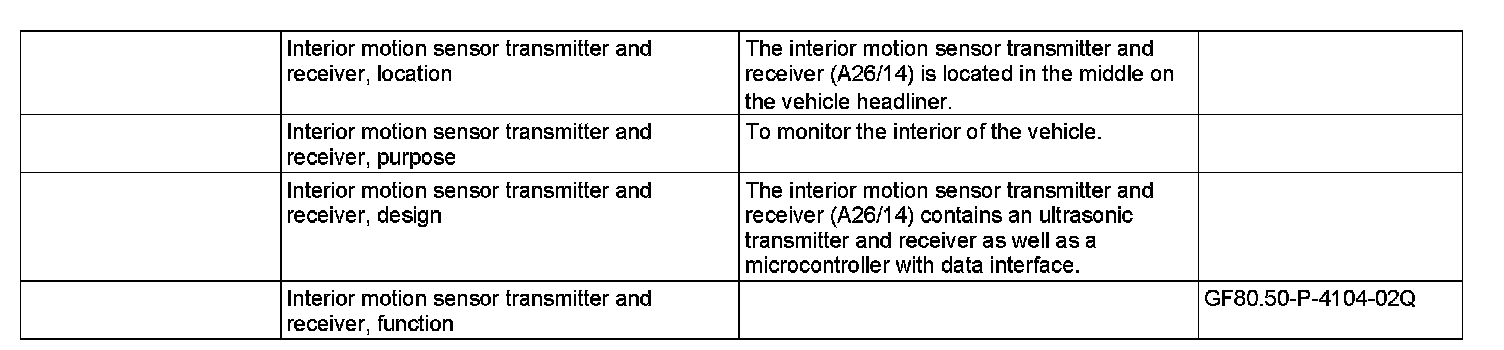 - with CODE (882b) Interior motion sensor (only with anti-theft alarm system)