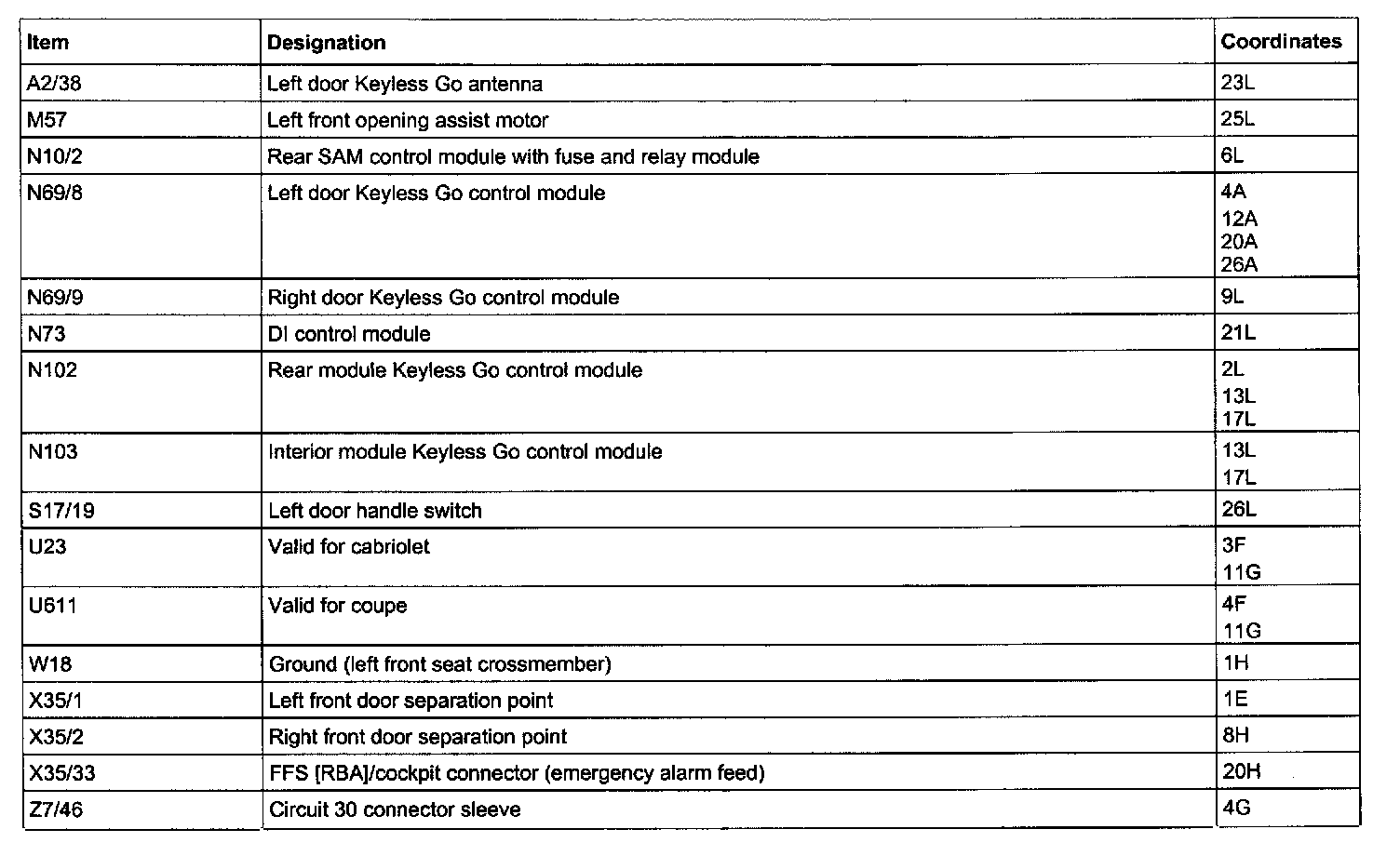 Component Description/Coordinates, A2/38 - Z7/46: