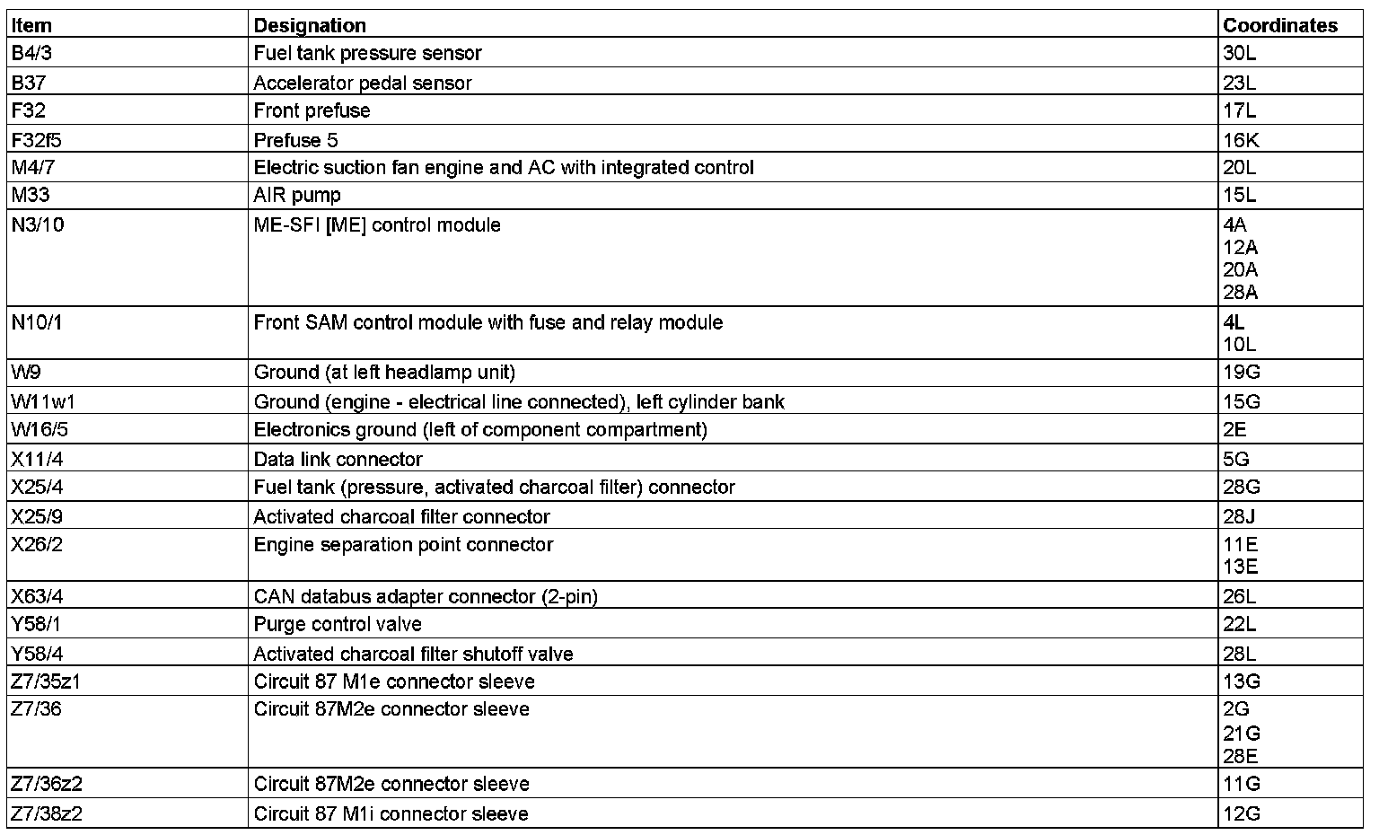 Component Description/Coordinates, B4/3 To Z7/38z2: