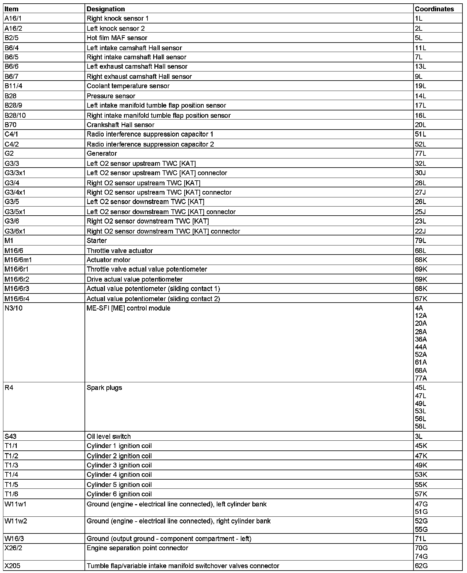 Component Description/Coordinates, A16/1 To X20/5: