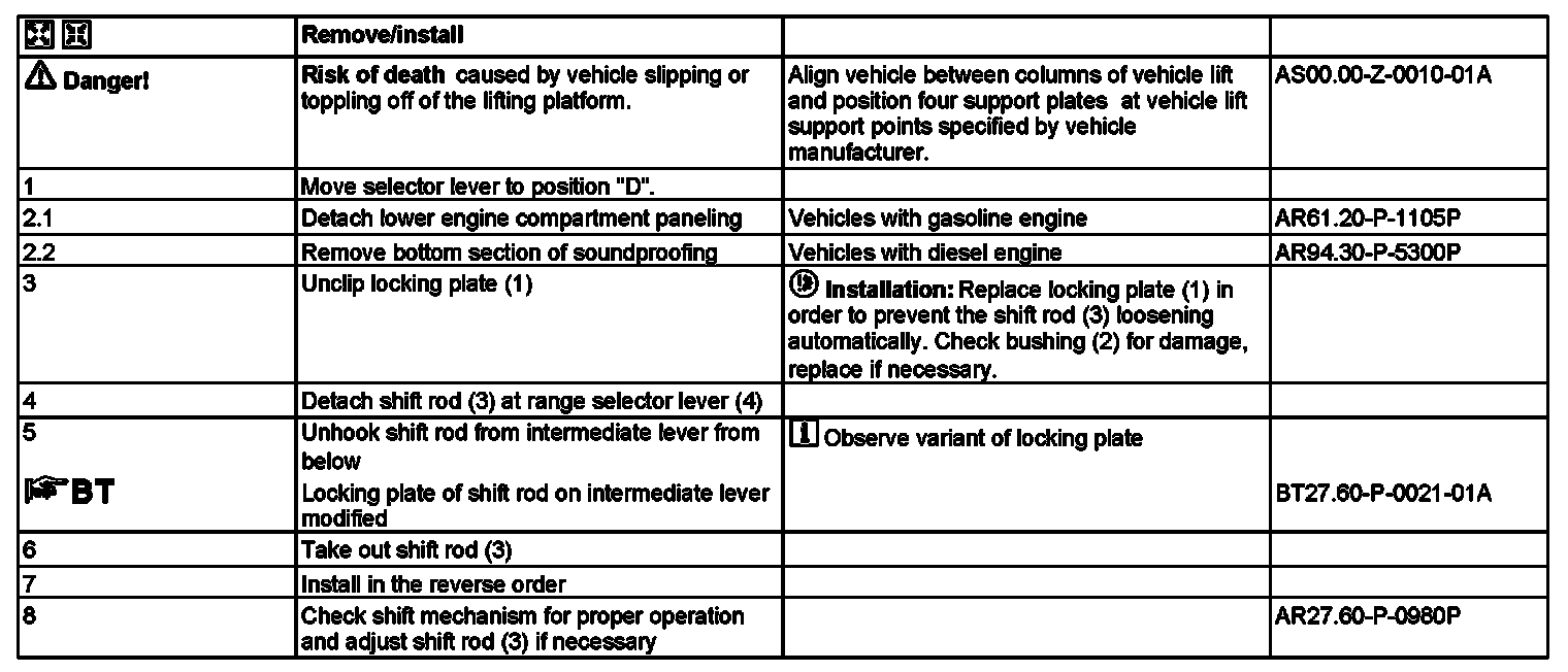 AR27.60-P-0985Q Remove/Install Shift Rod