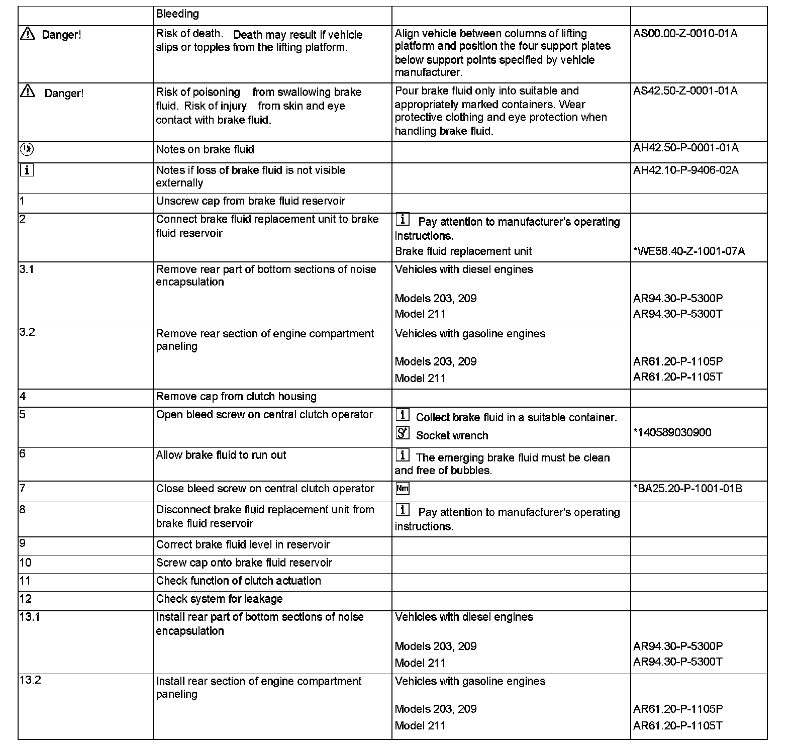 On models 129, 140 up to May 94 with ASR the connections of the pressure reservoir and charging pump in the front left wheelhouse should be checked for signs of leaks. As from June 94 the charging pump is no longer applicable for ASR V.