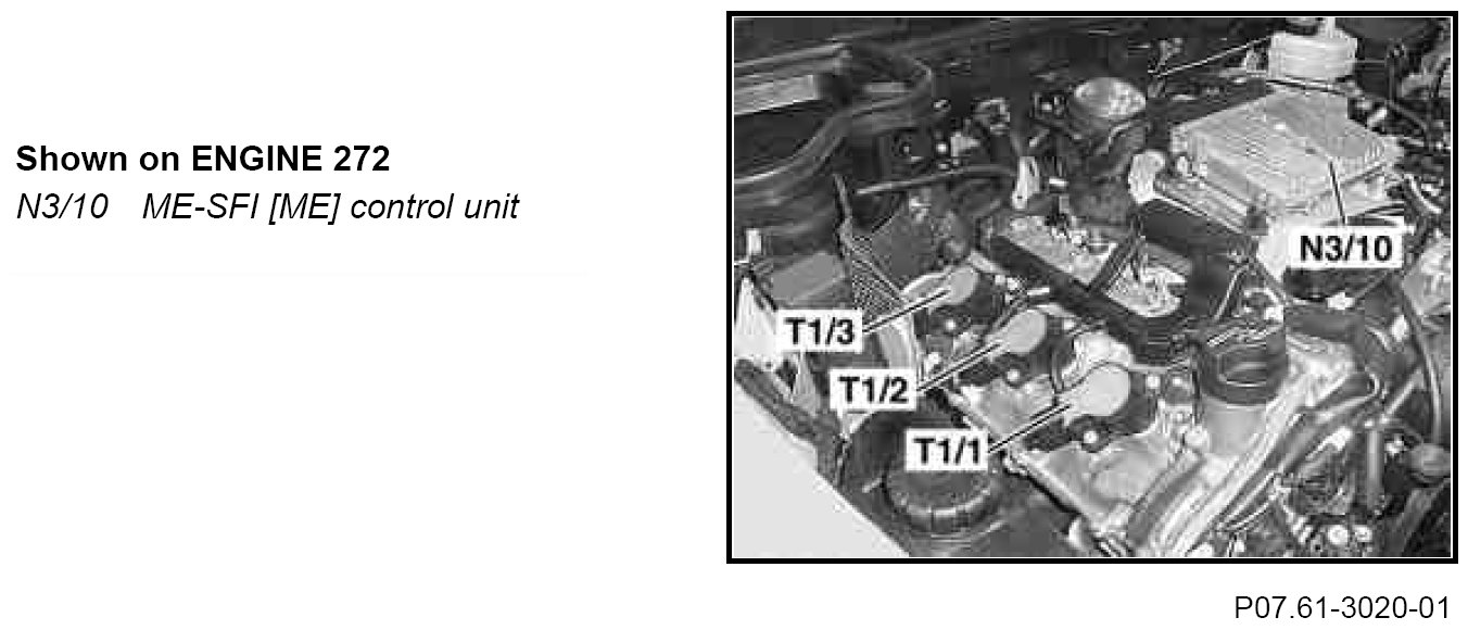 The ME-SFI [ME] control unit actuates the ignition system according to the input signals and performance maps stored in the ME-SFI [ME] control unit. The ME-SFI control unit calculates the ignition angle values and controls the anti-knock control (AKC).