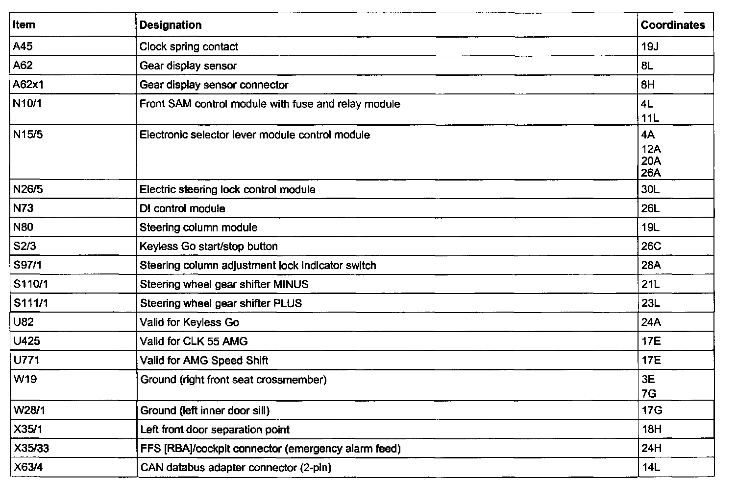 Component Description/Coordinates, A45 - X63/4: