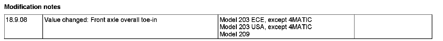 Front Axle Toe Check Values: