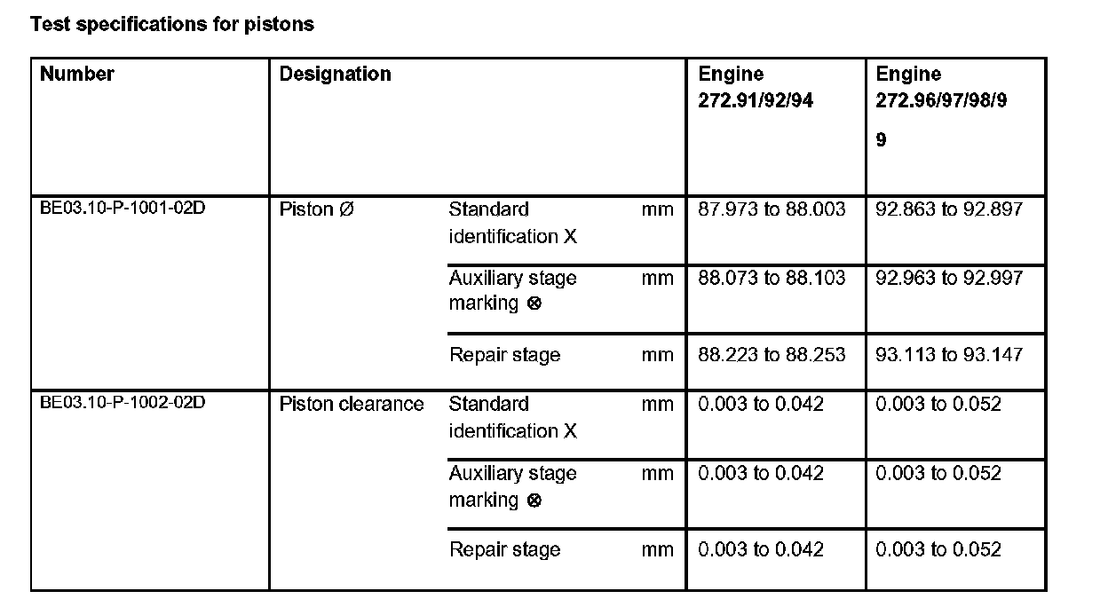 Test specifications for pistons: