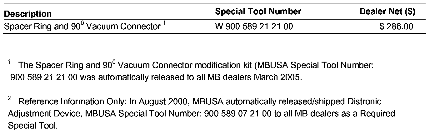 (Update to the Distronic Adjustment Device; MBUSA Special Tool: 900 589 07 21 00)