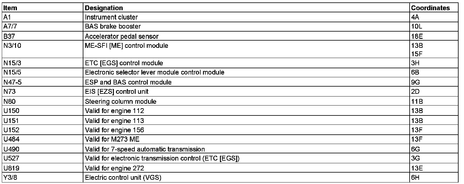 Component Description/Coordinates, A1 To Y3/8: