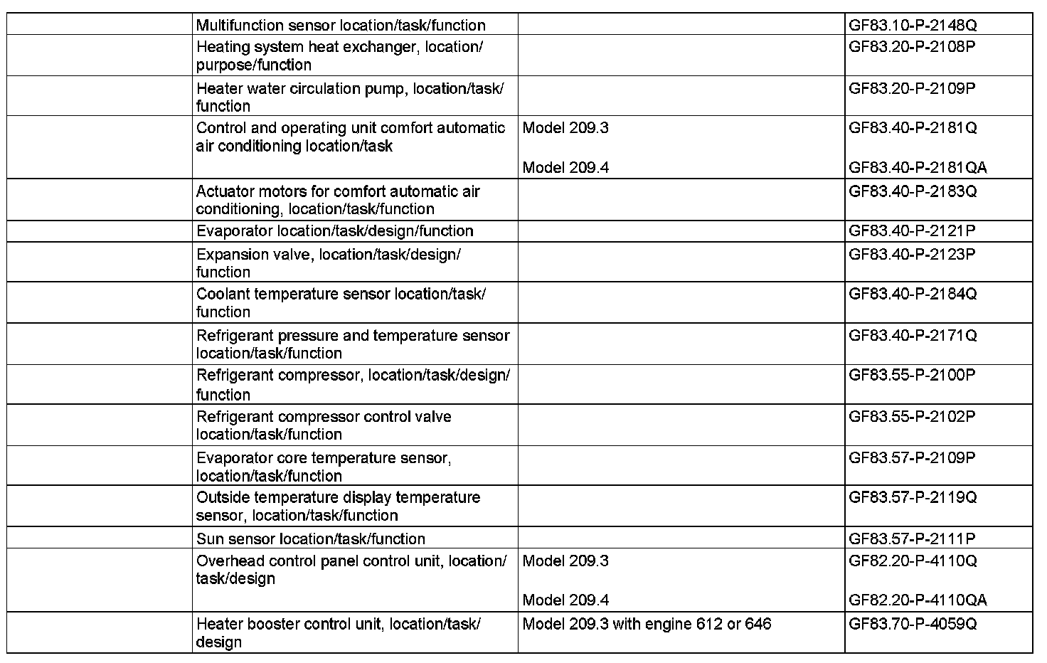 On model 209.4, while driving with an open soft top, the value of the in-car temperature sensor (N22b1) and the value of the in- car temperature sensor (N70b1) (as of 1.6.05) are ignored. The temperature control is controlled in this case with the aid of a fixed characteristic.