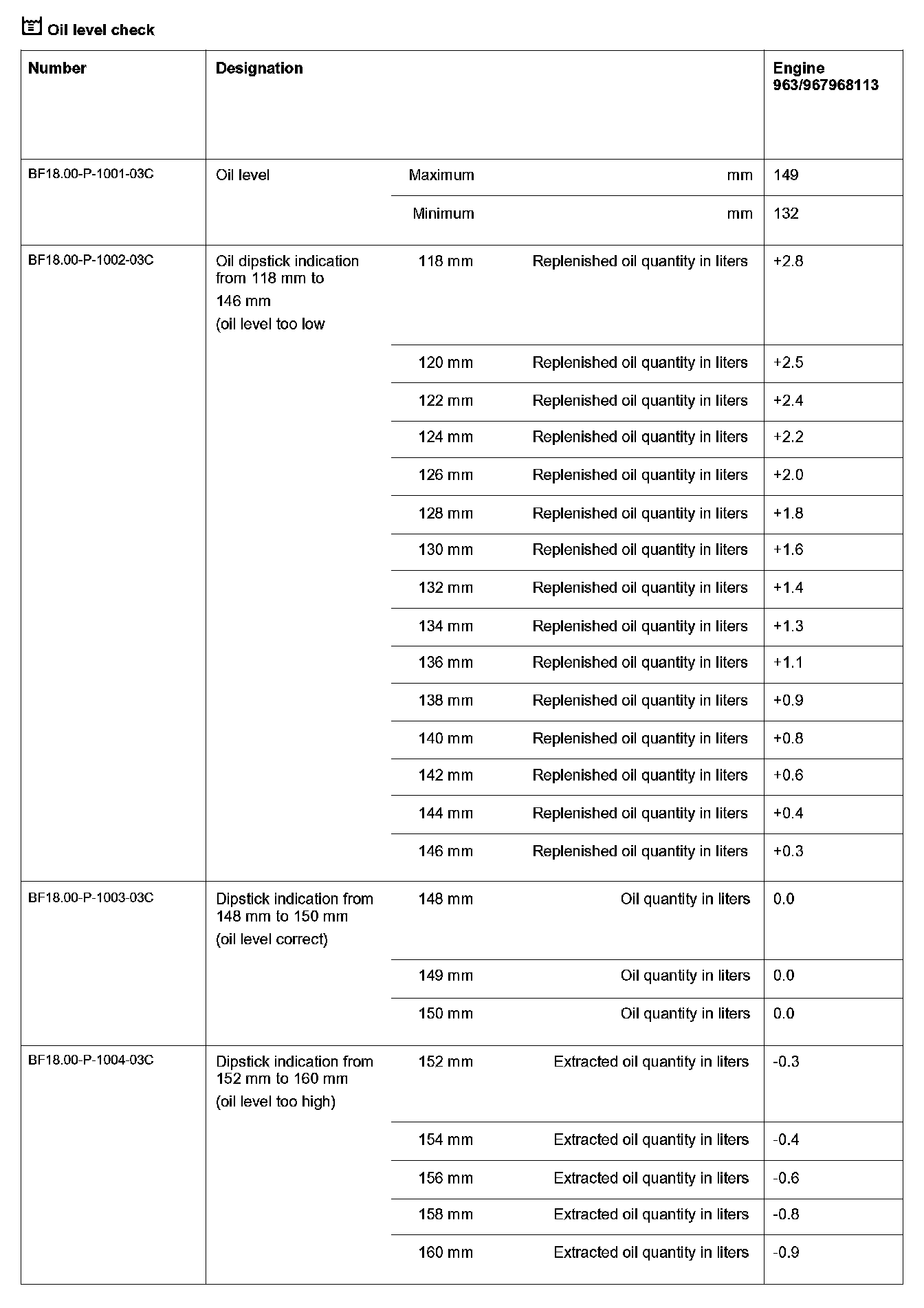 6 Determine replenished oil quantity using oil level table.