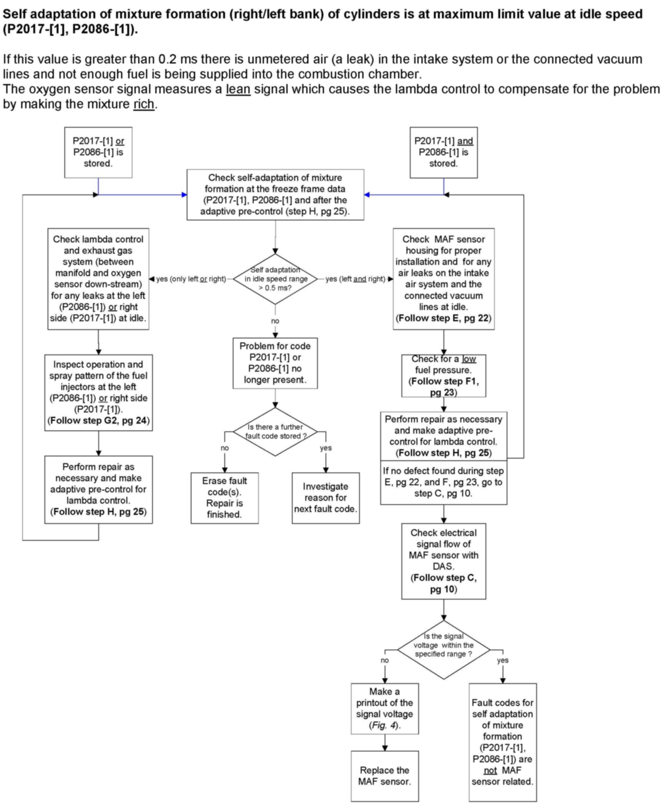 Description of test steps of failure analysis in case of a adaptation of mixture formation fault code
