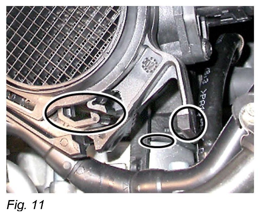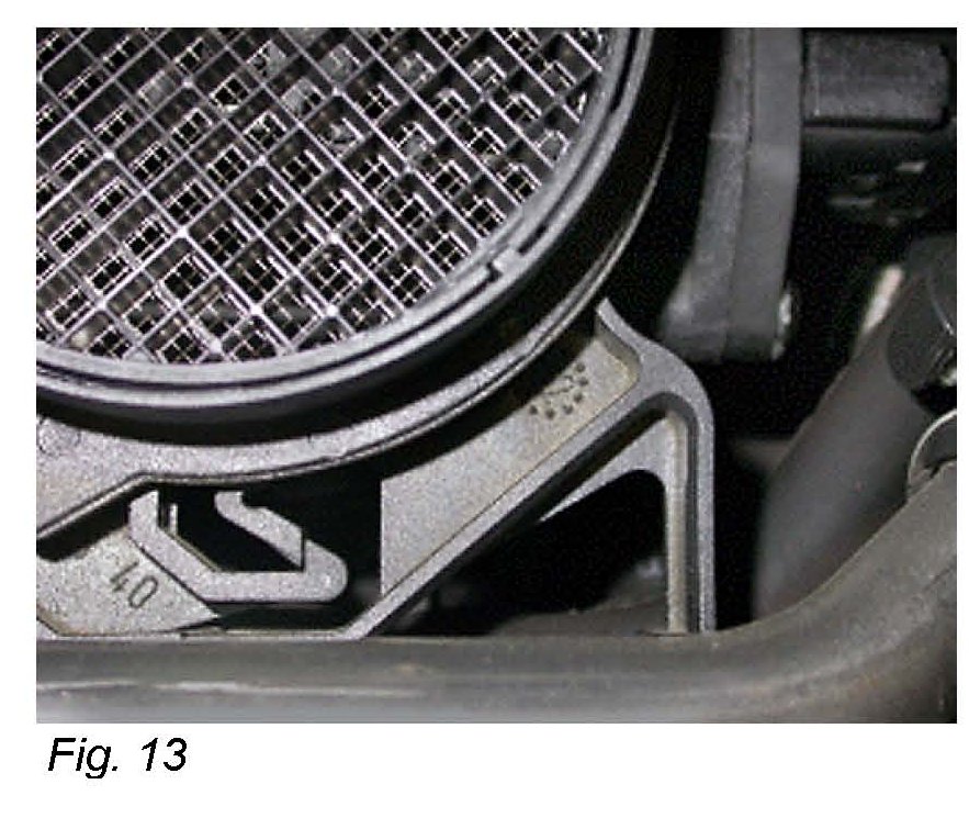 Check for proper installation of the mass air flow sensor to intake manifold. Refer to Fig. 11 and Fig. 12 as examples of improper installation.