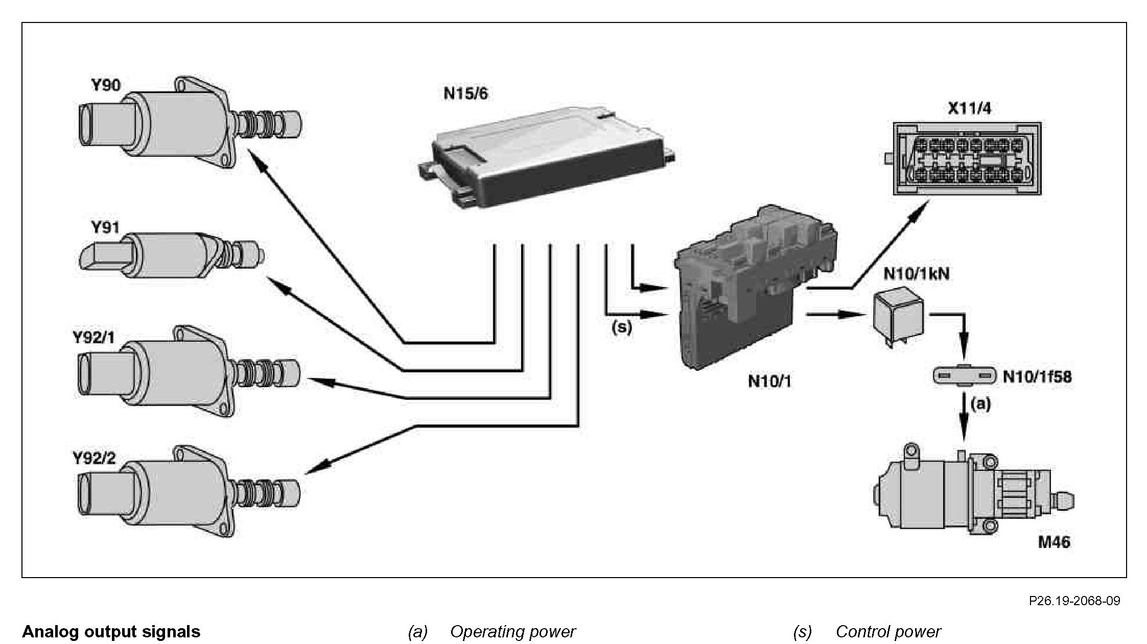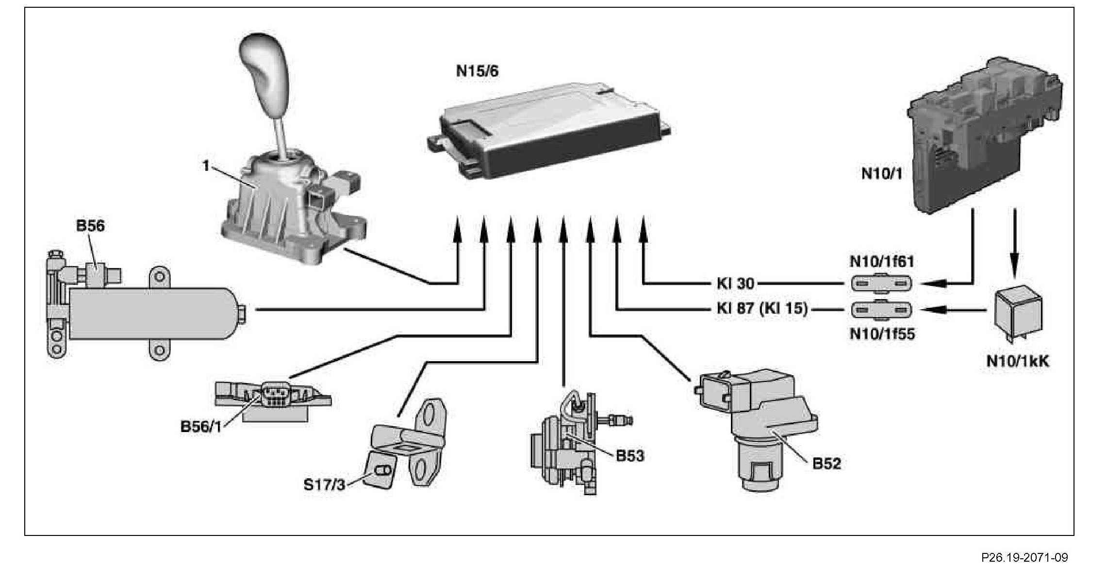 Only the easy-shift manual transmission control module (N15/6) is responsible for calculation of the shifting procedures obtained from the analog sensor values for the gear recognition, clutch rotation rate, clutch path, shift request and hydraulic fluid pressure value.