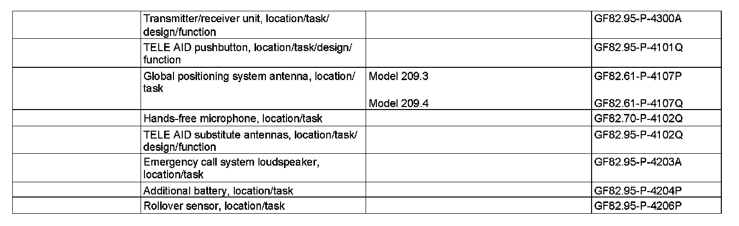 ^ Memory defect on telephone transmitter/receiver and TELE AID, D2B (A35/17)