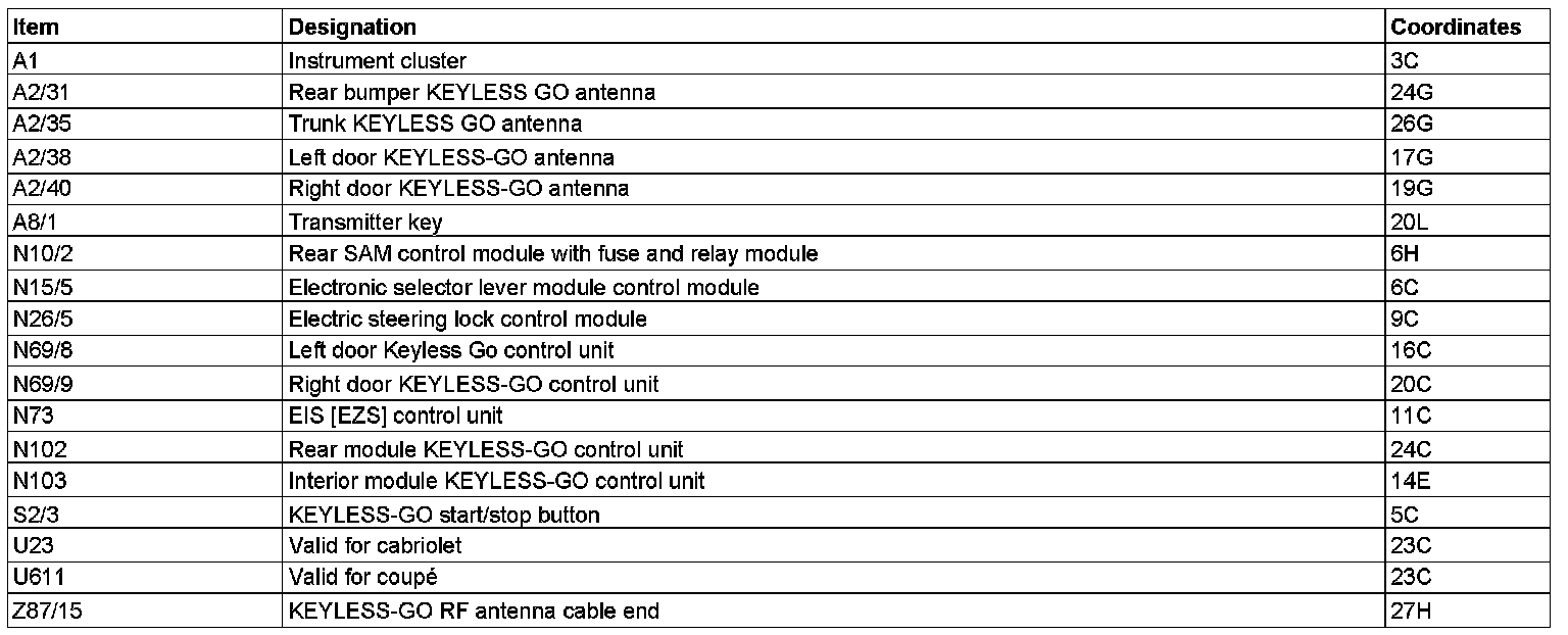 Function Diagram For Keyless Go PE80.61-U-2050BB